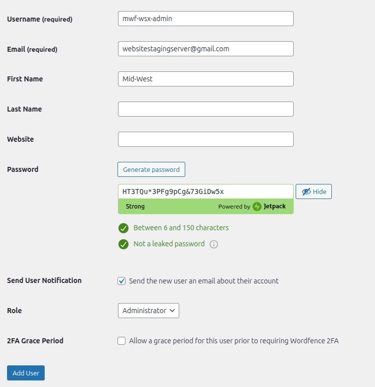 The next step is to choose a password for the user. You can either choose a password yourself or let WordPress generate one for you. It’s important to choose a strong password to keep your website secure.